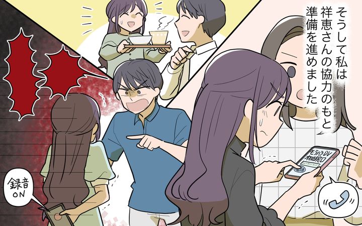 祥恵に夫の暴力的な行為の数々を涙ながらに話す麻沙美。ただ予定さえ守れば生活は保たれる。だけど…と泣き崩れる麻沙美に、祥恵はそっと寄り添い、自身もモラハラ経験者であること、逃げる方法があることを教えてくれる。