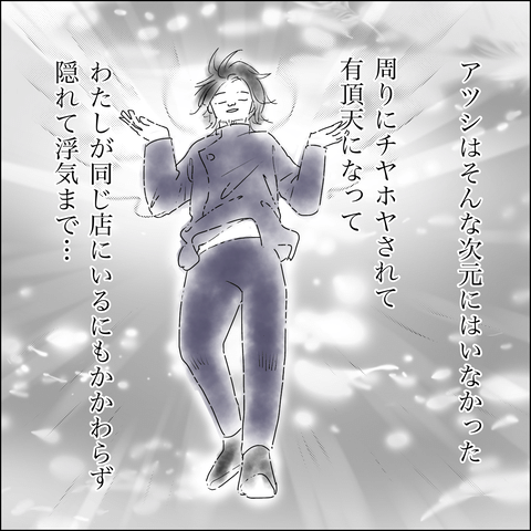 少しだけ顔を出そうと忘年会に向かったハルナ。すでに解散後だったようでアツシに連絡をしようとすると、ミツキを抱きしめるアツシを目撃してしまい…。
