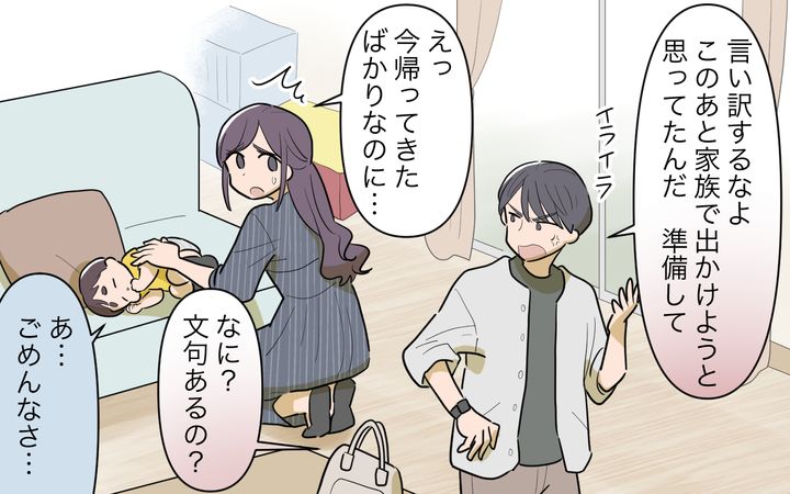 夫は普段は穏やかで優しいパパなのですが、食事の時間やお出かけの予定など、自分の決めたルールを妻と子どもにも強要し、守れなければ暴言を吐くのです。