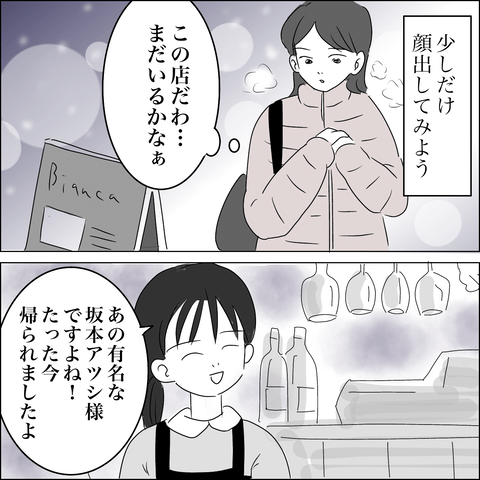 スタッフのアサに誘われたこともあり、少しだけ顔を出そうと忘年会へ向かったハルナでしたが、解散直後だったようでニアミス。