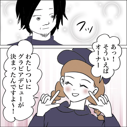 デビューが決まったと嬉しそうに話すミツキの愛想の良さに「俺のこと絶対好きだろ…」とニヤニヤが止まらない様子のアツシ。