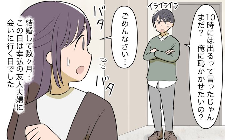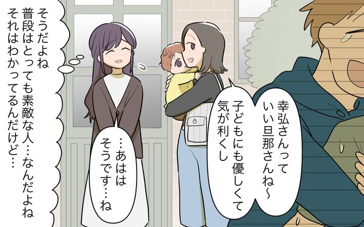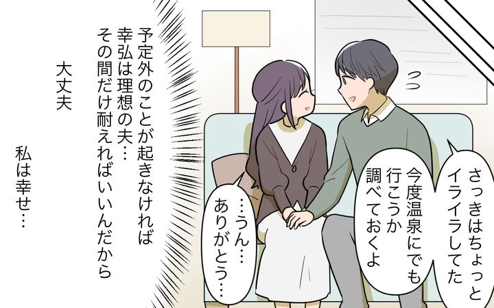 幸弘は、私の友人に会うときも、自分の友人といるときもいつも穏やかで優しく、完璧な夫でした。他人に対しては予定を崩されてもその場で怒ることはせず、必ず後でふたりになってからひどく文句を言うのです。