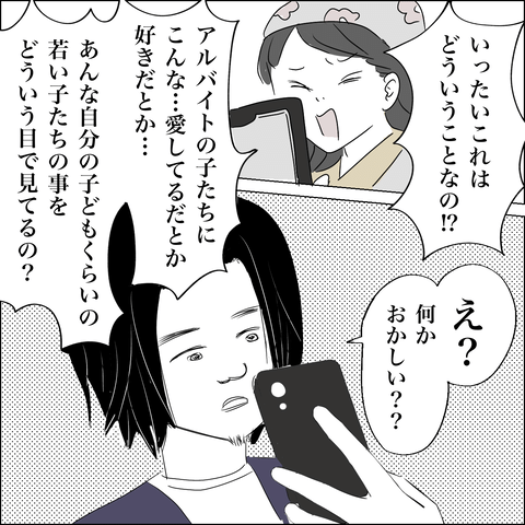 問い詰めても「みんなファミリーだから変な意味で言ってない」と言うアツシですが、いくらアルバイトの子たちを家族のような存在に感じていたとしても、やり過ぎな気もします…。