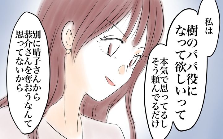 晴子さんはママ友に夫を好きな気持ちは隠してほしかったと伝えます。しかし、若菜さんは息子のパパ役をしてほしいだけで、奪うつもりはないと言ってきて…。戸惑う晴子さんにさらに追い打ちをかけるのです。