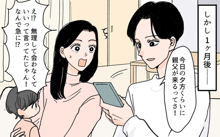 どうしても怒りが収まらず、夫に義母と会いたくないことを伝えました。その時は私の気持ちを尊重してくれたのですが、なぜか義父ひとりで訪ねてくることになり…。距離を置いていることがバレたのかと胸がざわつきます…。