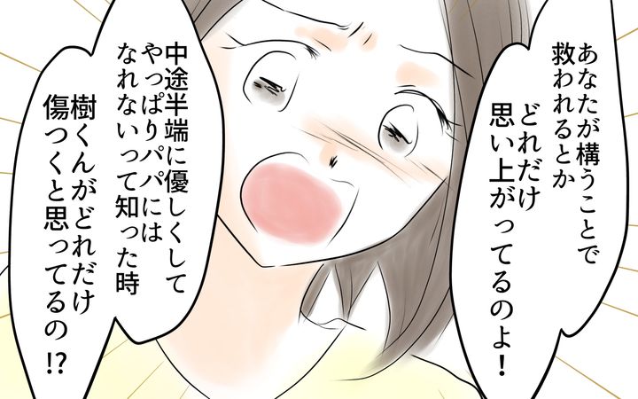 恭介の行動は子どもたちふたりの心を傷つけることになる。私はもっともらしいことを言って夫を非難しましたが、本当はずっとママ友に夫を取られてしまうんじゃないかと不安でいたことも泣きながら伝えました。