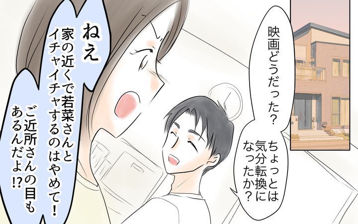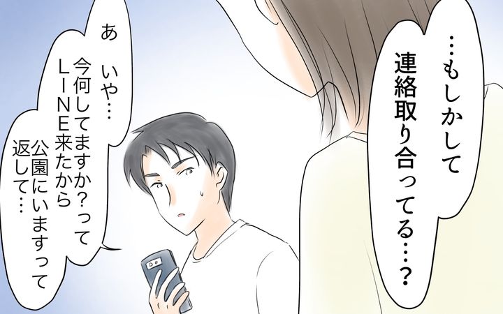 夫に若菜さんとイチャイチャしないでと強めに伝えたら、嫉妬してるのかとふざけてきたので、つい怒鳴ってしまった私。恭介から連絡したわけじゃないと言われましたが、そもそもなぜママ友は夫の連絡先を知っているのか。とても嫌な予感がして…。