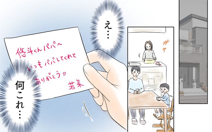 親子競技で優勝し、「家族」として1枚の写真に納まった恭介と若菜親子。その後若菜からお礼の手作りケーキをもらったが、そこには「いつもパパしてくれてありがとう」という手紙が。恭介は手紙を見ても「役に立てるなら何より」と笑うだけだった。とうとう晴子は若菜と距離をとることにする。