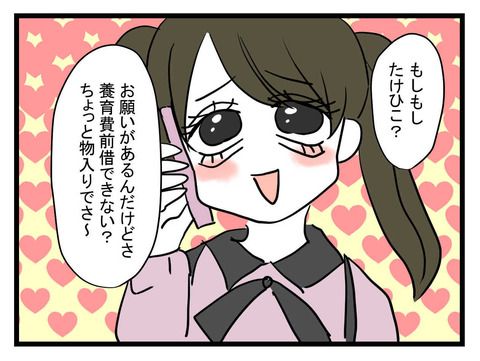 養育費が遊びに使われていると知ったたけひこは、容赦なく養育費を4万円に減額したのでした。