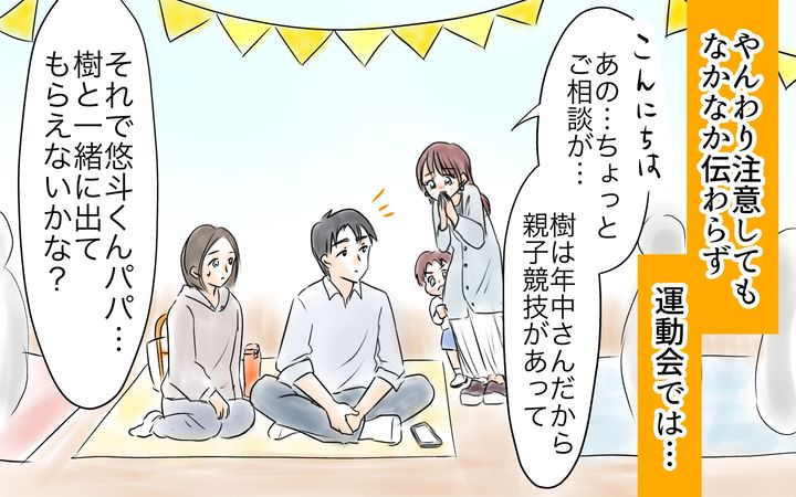 「パパ」呼びを注意しても、一向にやめようとしない若菜さん親子。そればかりか若菜さんは、運動会で樹くんの親子競争に「パパを貸してほしい」と言い出して…!?