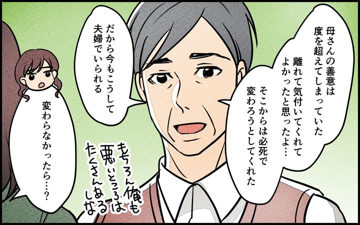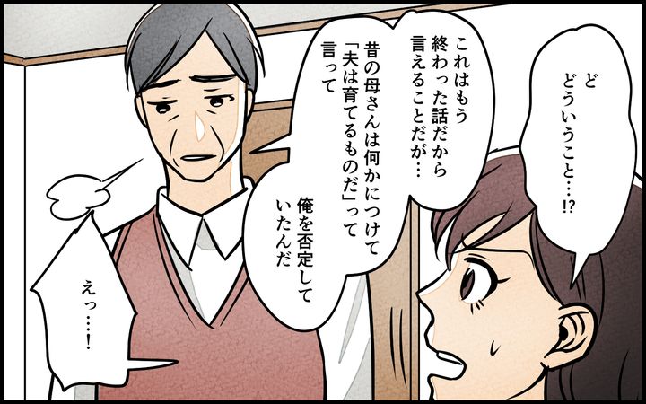 だけど確かに言われてみれば、昔の母は父への当たりが強かった気がします。私の「夫は育てるもの」という価値観は母譲りだったのかもしれません。