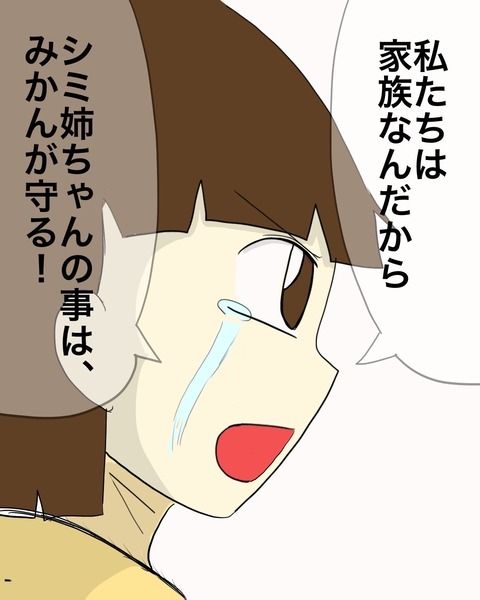 「私たちは家族なんだから、シミ姉ちゃんのことはみかんが守る!」
