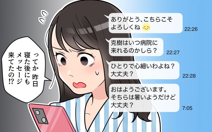 9時間の陣痛の末、娘を出産。疲れ果てた美咲がベッドに戻ると、義母から大量のメッセージが届いていた。あらためて出産の報告をすると、個別メッセージで優しい言葉が送られてくる。義母に悪気はないと感じた美咲は「いつでも連絡取り合いましょう」と返信するが…。
