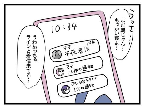 翌朝、スマホを見ると母から大量の着信が。しかし、それには目もくれず、推しのまひとからの連絡に興奮し、今夜もお店に行く気満々の様子。