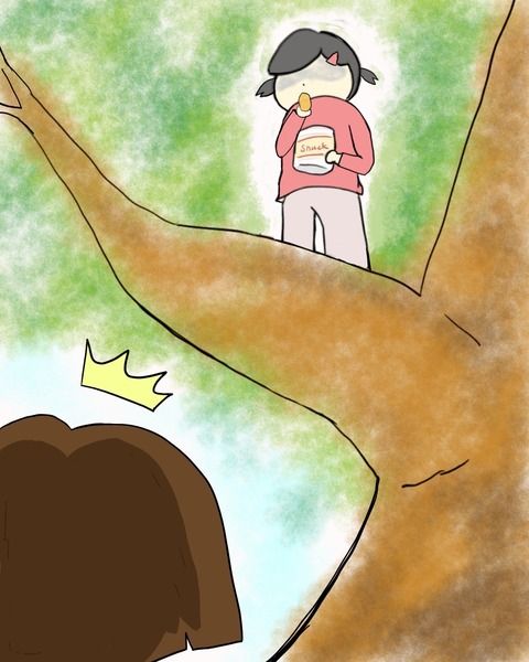 K先生によってケーキに嫌がらせをされたシミ姉ちゃんは、走って部屋から出て行き木に登って行く。良からぬ行動をしてしまいそうなシミ姉ちゃんに、みかんさんは「だめー!」と大声で止めるのだが…!?