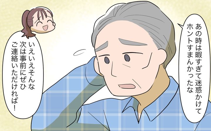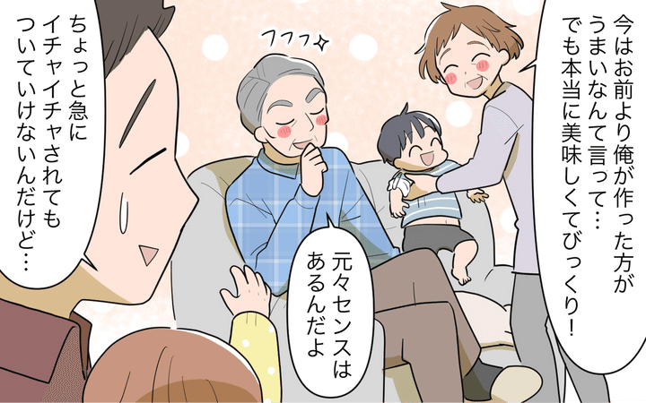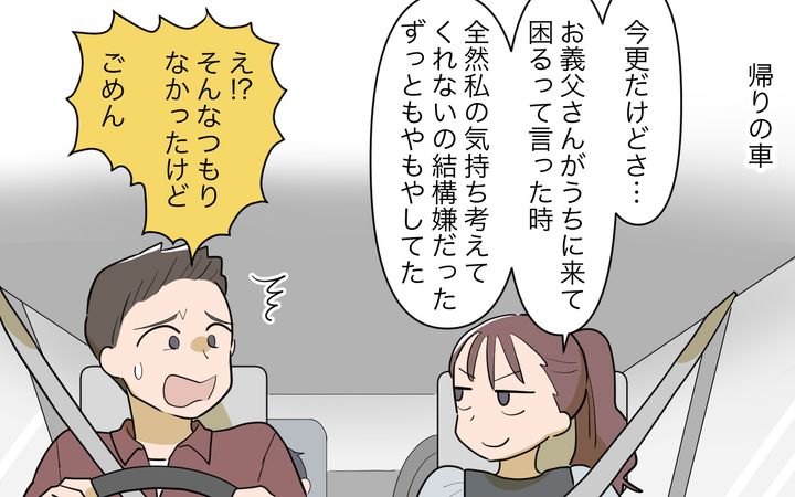 相手の気持ちをまったく考えない義父が嫌だったと語る義母。都合のいい家政婦をやるつもりはないとキッパリ宣言する義母に、頭を抱えて反省する義父。そうやってようやく義母も義父に歩み寄れる気持ちになる。もっと伝え合おうと家族会議で話し合い…。
