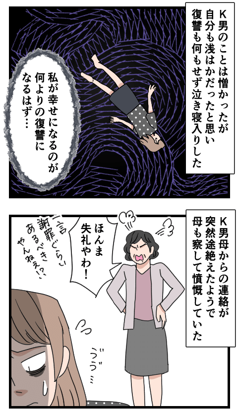 K男の両親とも親交を深め、遠距離カップルとして過ごして約1年。仕事を辞めて帰ってくるK男に手伝おうかと尋ねたところ…。なんと「嫁と帰るから」と思わぬ返答が! なんと東京でできた彼女と結婚するから実家に連れて帰るというのです。