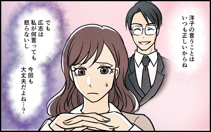 「昇進の話はナシになった」と聞かされ激高した洋子は、広志に向かって「あなたとの結婚は失敗だったのかも」などと暴言を吐いてしまう。さすがに反省する洋子だったが、翌朝、広志は口を聞いてくれなくて…。