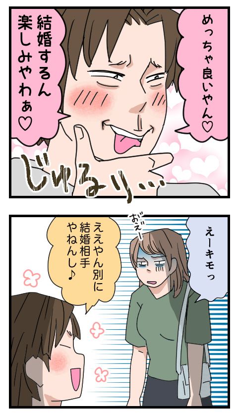 その後、もちこはK男とは距離をとり、彼氏もできることに…。しかし彼氏とは27歳で破局。周りで結婚ラッシュが始まり焦っていると、K男から連絡があり、またしてもK男との結婚に傾いてしまうのでした。