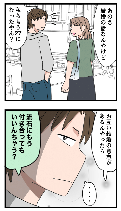 白黒ハッキリさせたい性分のもちこは、ずばり結婚話を切り出します。