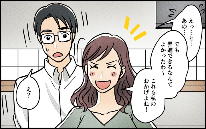 いつも通りに夫を褒めて伸ばしながら、昇進する日を楽しみにしていましたが…。