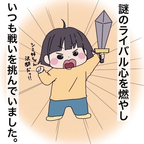 みかんさんは、シミ姉ちゃんのことが大好き。しかし、なぜかライバル心を燃やし、いつも勝負を挑むようになります。