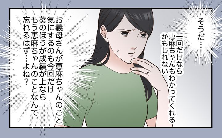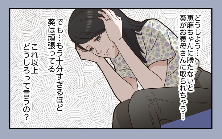 葵が中学受験に失敗したら夏美に出て行ってもらうと言う義母。さらに義母は息子にもそう伝えてあると言う。夫が実は自分を見下していたのかと不安になった夏美は、夫に真相を聞くことができないでいた。葵の成績は順調に伸びたが、義母が恵麻の存在を知ってしまう。「田舎から戻ってきた子」に模試で負けたら「わかってるわよね」と義母は夏美にプレッシャーをかけるのだった。