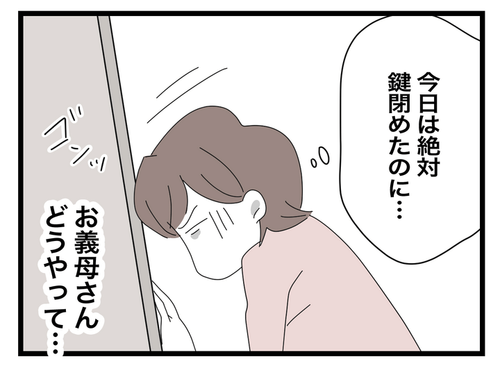 自宅に帰宅した翌日、突然家に入ってきた義母。どうにか追い出し、翌日は戸締りをしっかりしようと決意する菜々子さん。しかし翌日、鍵を閉めたはずなのに、また義母が家に入ってきて…!?