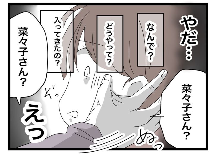 昨日無理やり追い出したにもかかわらず、今日も当然のように家に入ってきた義母。夫と一緒に鍵を閉めた確認までしたのだから、絶対に閉め忘れなんてありえない…! 菜々子はとてつもない恐怖に襲われるのでした。