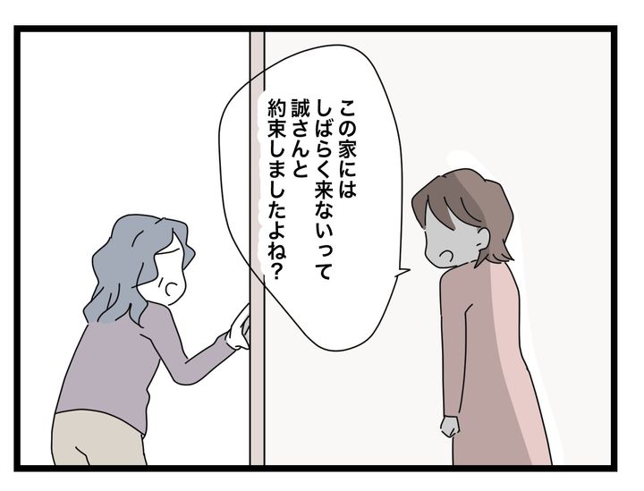 菜々子に追い出された義母はドアを叩きながら「あなたが心配」と大声で訴えますが、そもそも夫との約束を破っているとキッパリ指摘されます。