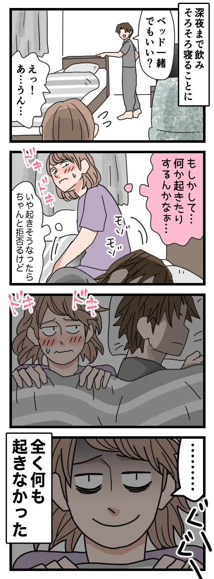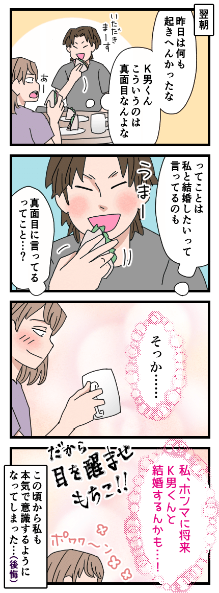 結局何も起きなかったものの、あっさりのK男の言動に惑わされてしまう、もちこ。