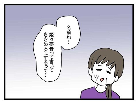 赤ちゃんの名前を「姫々夢音(ききめろ)」と名付けたりなに対し、「キラキラネームのレベルじゃない!」と怒るさえ。