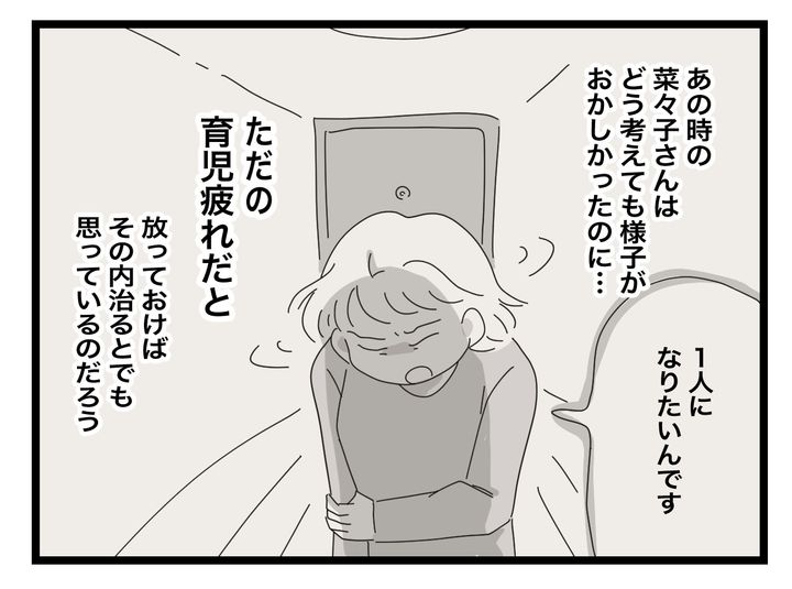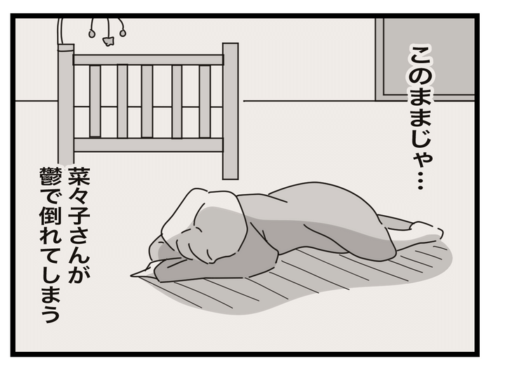 産後間もない体で赤ちゃんのお世話をする主人公・菜々子。極度の睡眠不足の理由は、菜々子の「産後うつ」を心配してやってくる義母にあった。「産後は話し相手が必要」としゃべりまくる義母に疲れ果てる菜々子。「しばらく来ないで」と断っても「あなたが心配」と家に来ることをやめてくれない…。