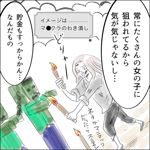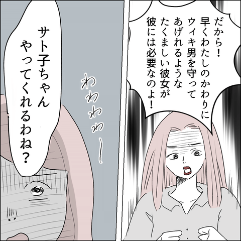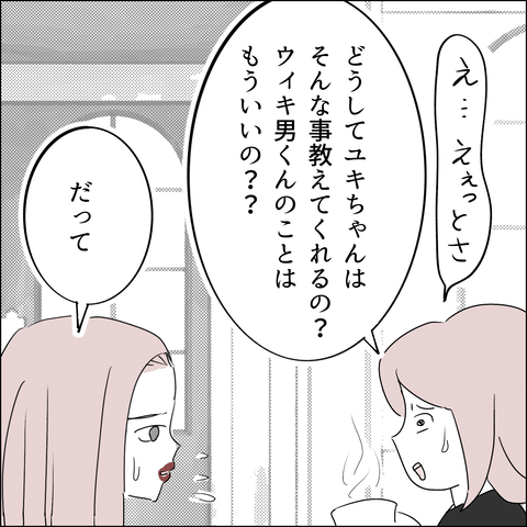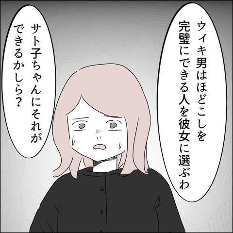 グループ展の会期中、見た目が変貌したウィキ男の元カノ・ユキがあらわれます。2人でお茶をしていると、ユキはサト子に頑張り次第でウィキ男と付き合えるのだと熱弁します。