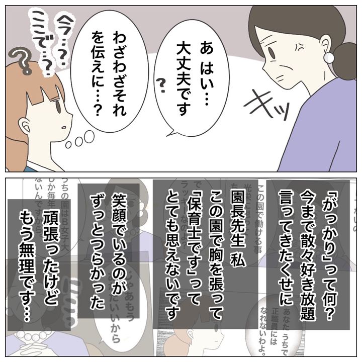 「あなた、辞めるんですってね」突然現れた園長 さらには非情な一言まで【ブラック保育園辞めました Vol.20】