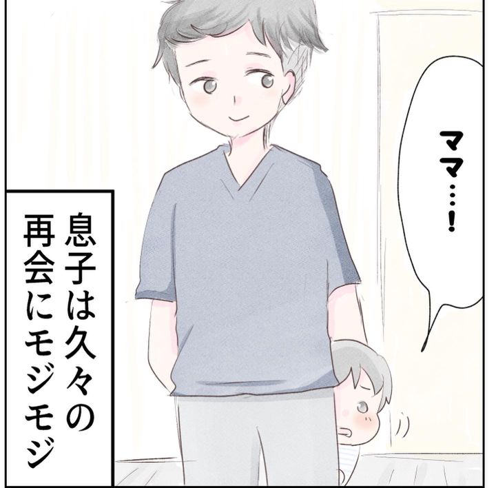 そして1週間後、私と赤ちゃんは無事退院。久しぶりに会う息子は緊張しているのかモジモジしていました。