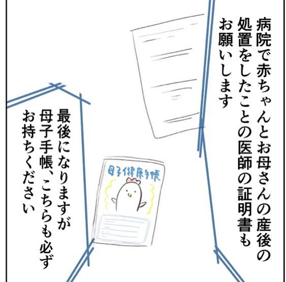 看護師さんによると、胎盤が出てしまってから来た出産はこれまでなかったようで、出生届について自分で市役所に聞くことに。さらに看護師さんから「次はわかってるわね…?」と確認され反省するのだった。