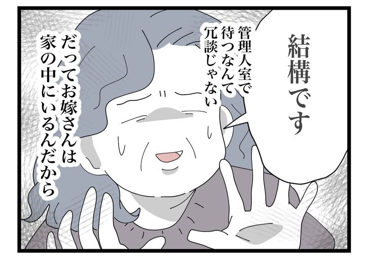 嫁が家の中にいると分かっている義母は、管理人の申し出を断りましたが…?