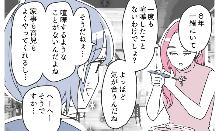 ホテルに宿泊したという日は、茜が実家に泊まった日だった。仕事は嘘だったのかと疑い始めた茜だったが、思い切って浩司に聞いてみると、浩司は「誤解させてごめん」と謝ってきて…。