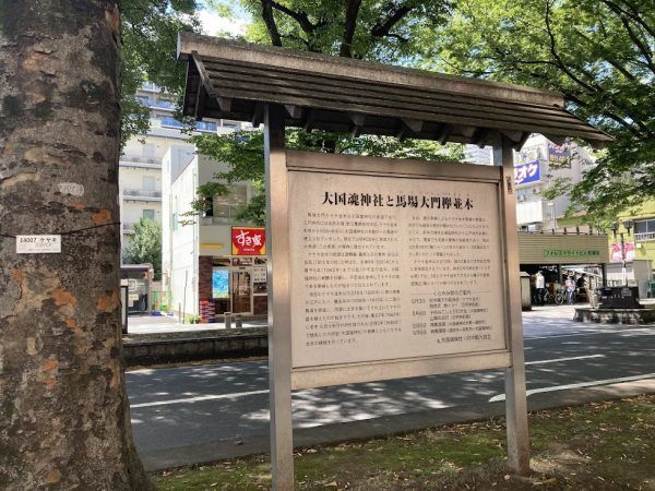 けやき並木通りの一角に「大國魂神社と馬場大門欅並木」についての解説があるので詳しく知りたい方は必見です。