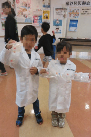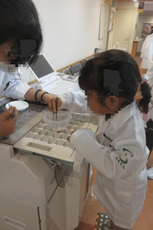 子供薬剤師として、白衣で分包を体験する事が出来ました。