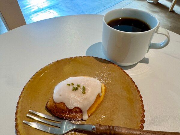 店主さんが「何度も作っていて大好きなケーキ」と語るのが、このレモンケーキです。魅力の核となるのは、惜しみなく使われた手作りのレモンピール。存在感ある甘さとほろ苦さ、そして甘酸っぱい香りがケーキ全体の味わいを引き上げています。
