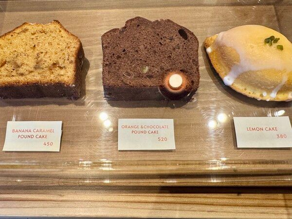 優しい甘さのバナナと自家製キャラメルソースが織りなすパウンドケーキ。このケーキは、シナモンがアクセント。実は浅煎りコーヒーはスパイスや塩気と相性が良く、シナモンの香りがコーヒーの持つ複雑な風味を引きだし、奥深い味わいへと変えてくれるそうです。