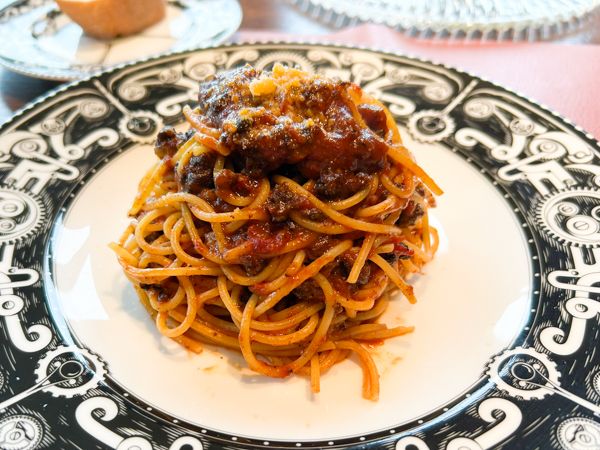 お肉がゴロっとたくさん入っていて、とても食べ応えがありました! パンもついていたので、ボロネーゼのソースをたっぷりつけて楽しめます。