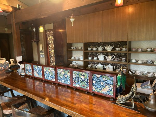 中に入ると、アンティーク調の家具や小物がたくさん並んでいて、まるでイギリスのレストラン!