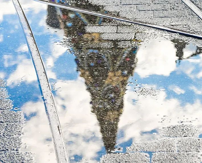 ですが、そんな時は逆転の発想で水たまりに反射する逆さクリスマスツリーを撮ってみるのはいかがでしょうか。