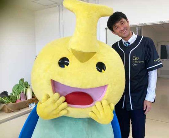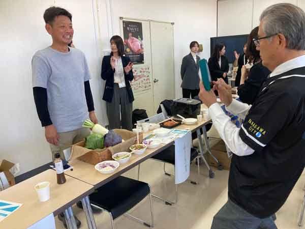当日、商品説明を担当した那珂川市地域戦略課・神代課長とのツーショット