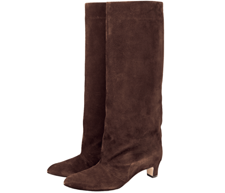 こっくりとしたスエードのブラウンが温かみたっぷり。太めの筒が美脚見えも叶える。ブーツ¥110,000(ネブローニ/アルアバイル)