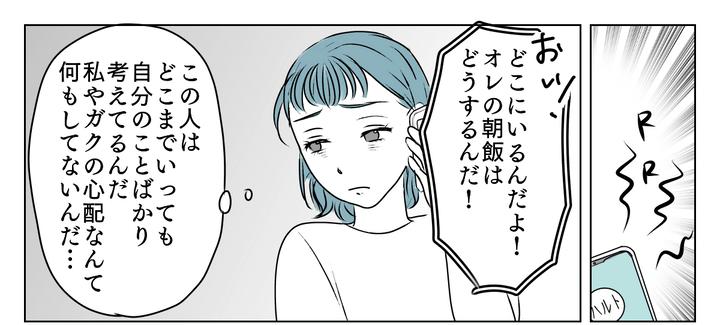朝になると夫からの電話が。「オレの朝飯はどうするんだ!」という身勝手な第一声に、私の気持ちは冷えきっていきました。両親に夫が来ることを告げ、私の心も臨戦態勢に入ります。