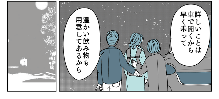 夜中に駆けつけてくれた両親の顔を見た瞬間、また泣いてしまいました。車中でこれまでの経緯を話すと、両親は何も責めずにただ聞いてくれました。